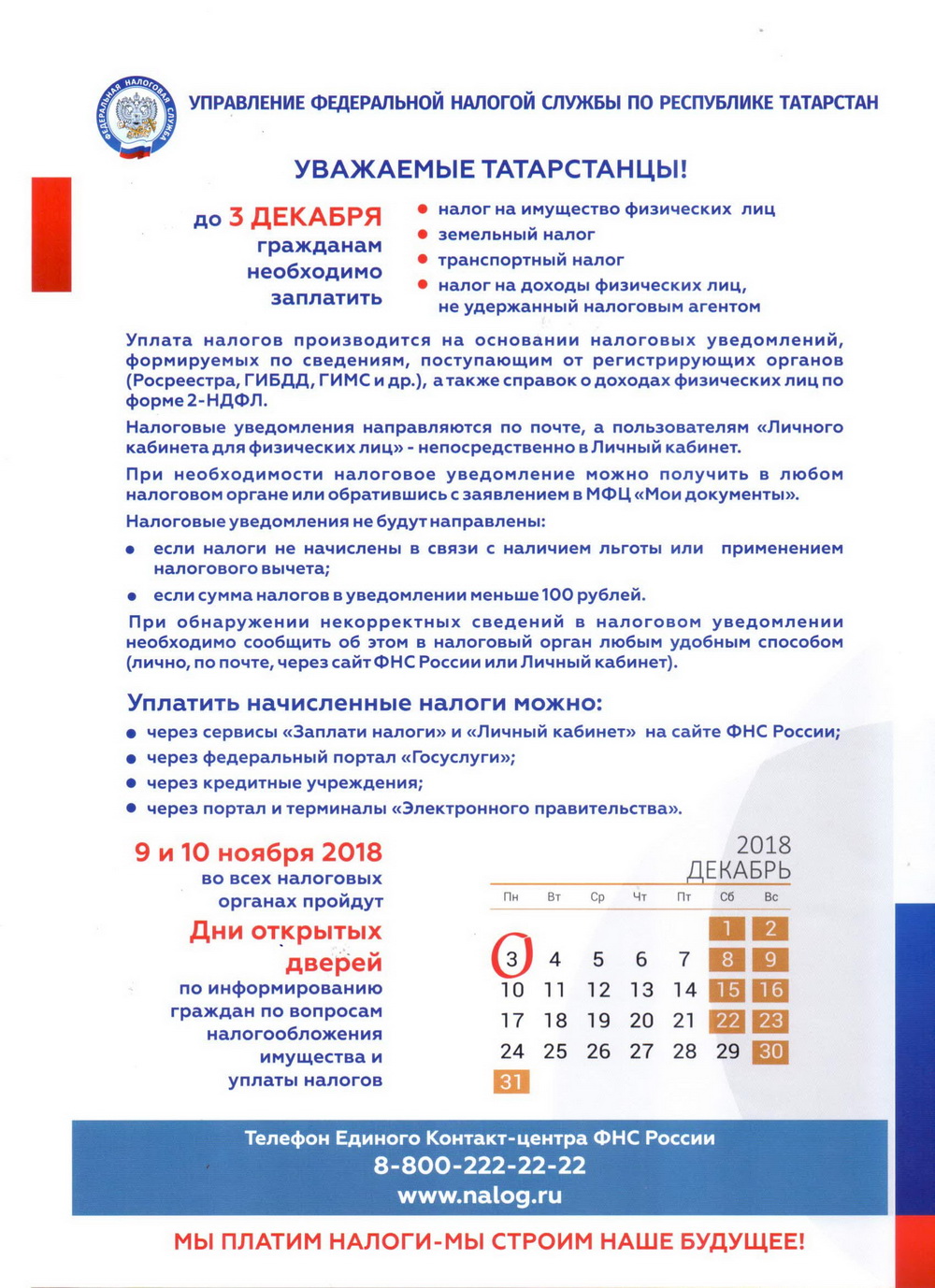 До 3 декабря кайбичанам необходимо оплатить налоги