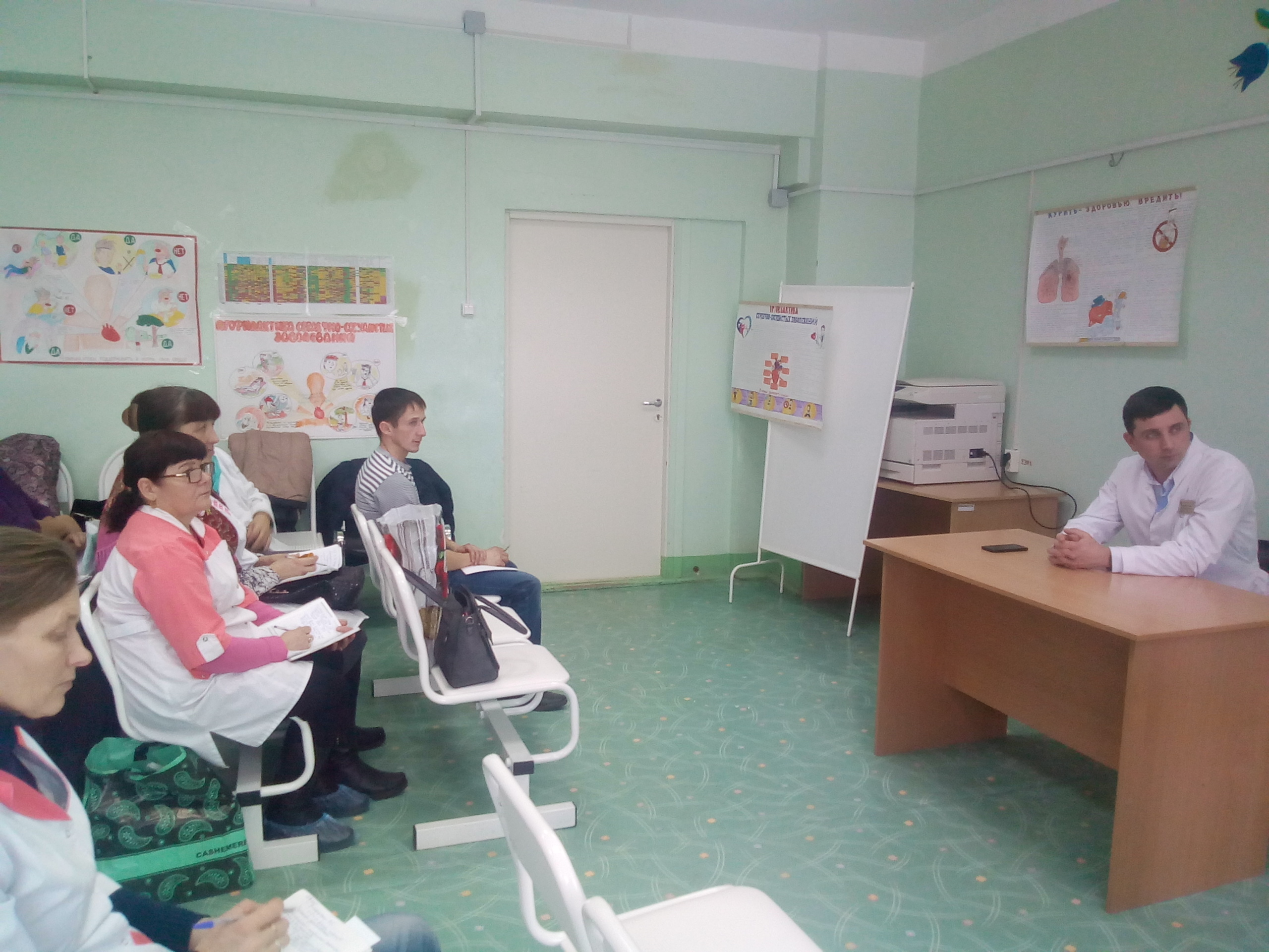 На совещании выступили: заместитель главного врача по медицинскому обслуживанию населения Нигматуллин Бахтияр, заведующий поликлиникой Магомедов Газимогомед, врач- дерматовенеролог Галина Писарева.