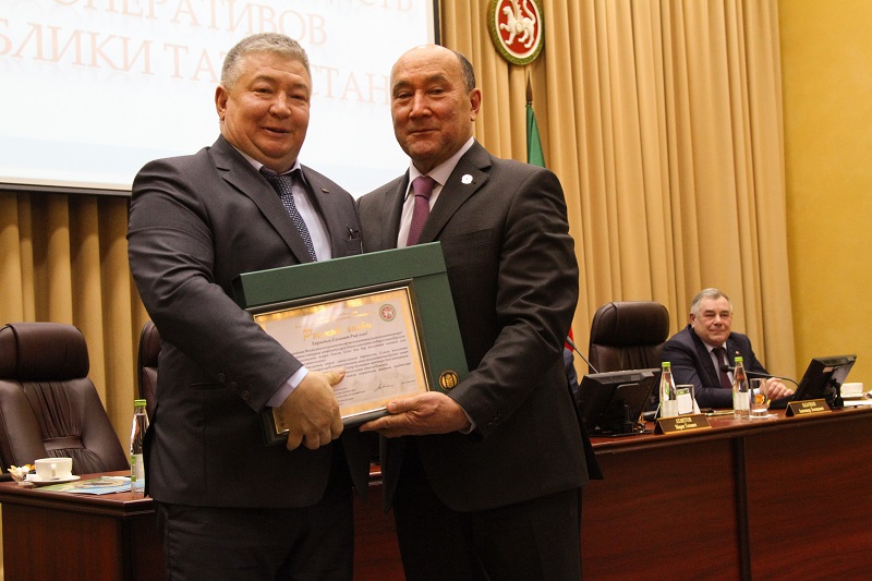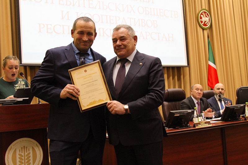 В завершение мероприятия были награждены отличившиеся в работе коллективы и работники районных потребительских обществ. Благодарственным письмом министерства сельского хозяйства и продовольствия Республики Татарстан награжден председатель правления Молькеевского потребительского общества Салават Халиков, а благодарственным письмом председателя Ассоциации «Совет муниципальных образований Республики Татарстан» награжден водитель-молокосборщик Юрий Демьянов. Марат Ахметов дал положительную оценку работе Татпотребсоюза за 2018 год.