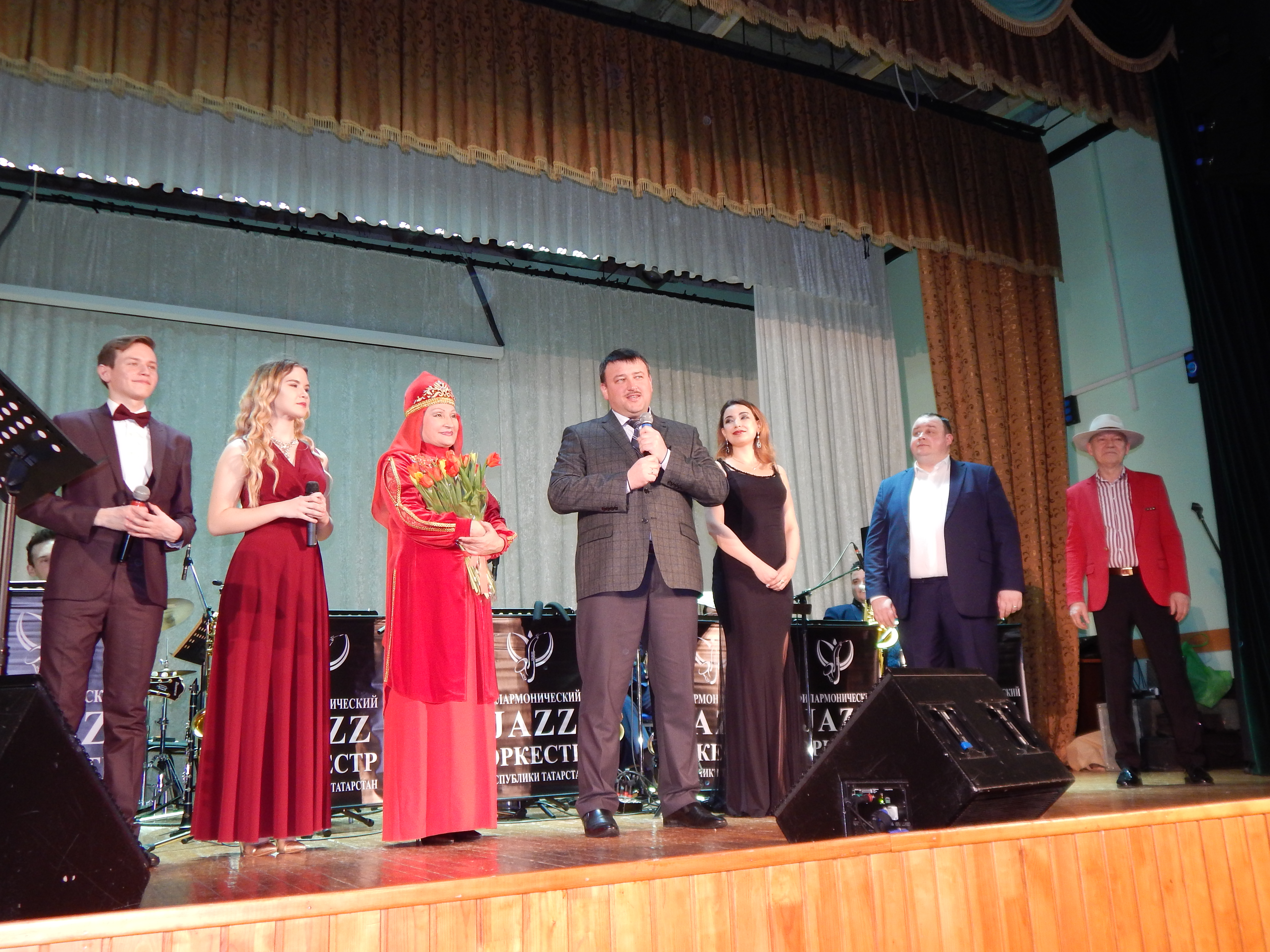 Сегодня, 21 февраля филармонический джаз-оркестр Республики Татарстан дал концерт в районном Доме культуры. В концерте приняли участие заслуженная артистка России, народная артистка Татарстана Лидия Ахметова, народный артист Татарстана Асаф Валиев, художественный руководитель и дирижер оркестра Сергей Васильев, а так же Марина Усманова, Элина Сафина, Динар Шарафутдинов.