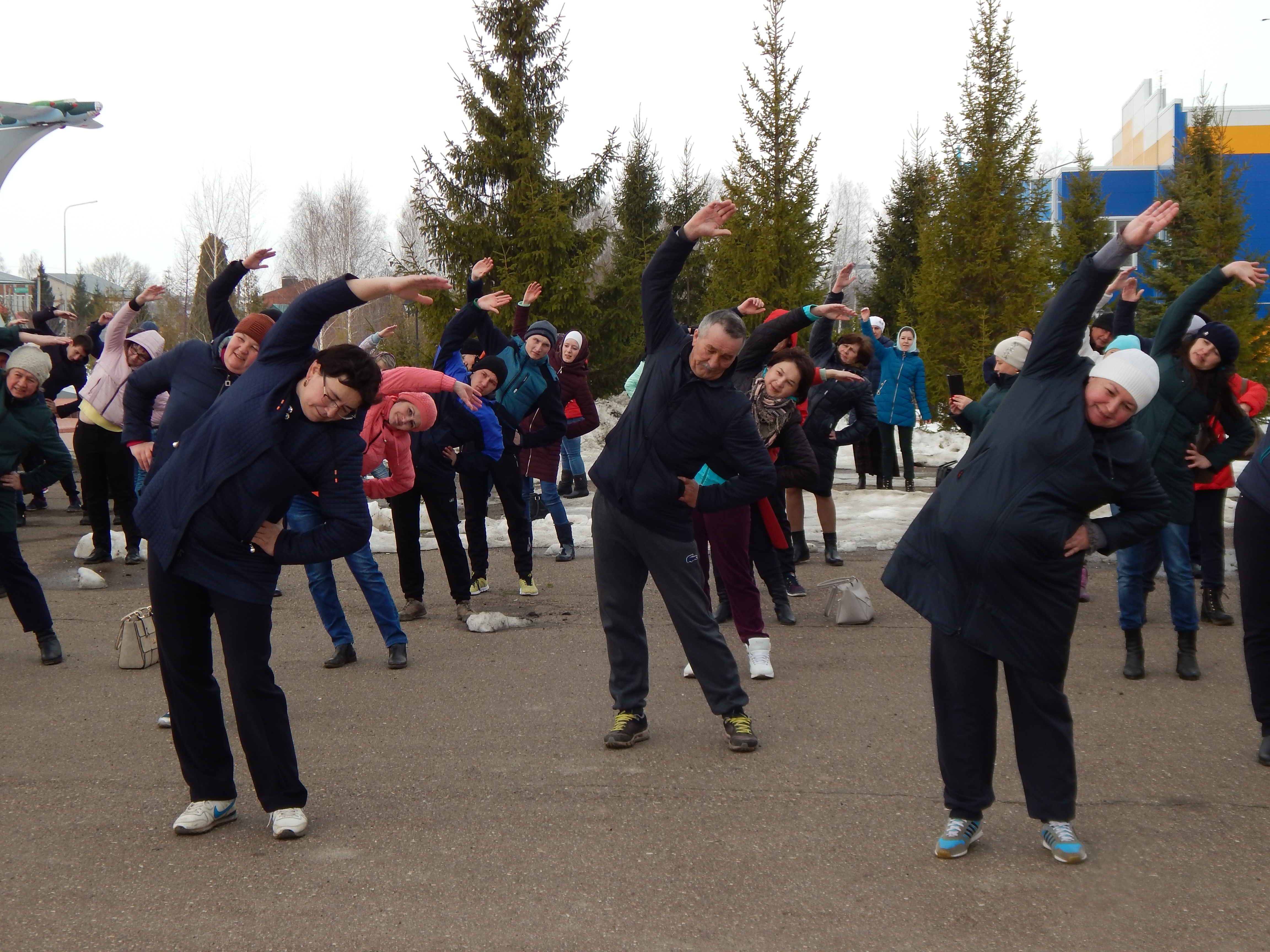Вторая часть мероприятия прошла возле административного здания Совета и Исполнительного комитета, где состоялся флешмоб, которую провели директор ДЮСШ Динар Гатауллин и начальник отдела молодежной политики, физкультуры и спорта Зухра Лутфуллина.