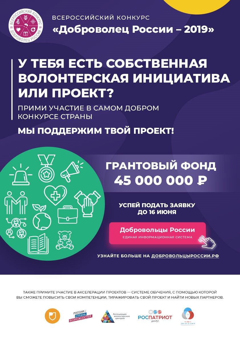 Подробности на сайте: добровольцыроссии.рф в разделе «Конкурс»