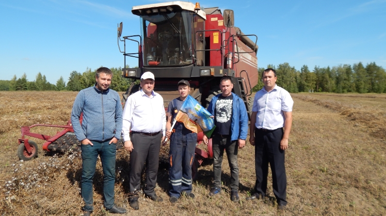 Сегодня Глава района Альберт Рахматуллин совместно с начальником управления сельского хозяйства и продовольствия Радиком Камалетдиновым объездил хозяйства района, с целью наградить механизаторов, намолотивших наибольшее количество зерна.