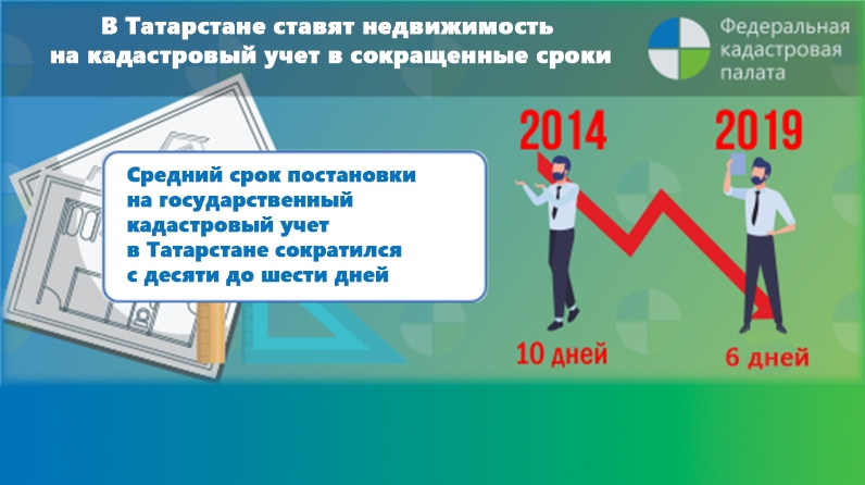 Средний срок постановки на государственный кадастровый учет в Татарстане сократился с десяти до шести дней за последние три года. Это стало возможным благодаря внедрению электронных сервисов и развитию различных форм межведомственного взаимодействия.