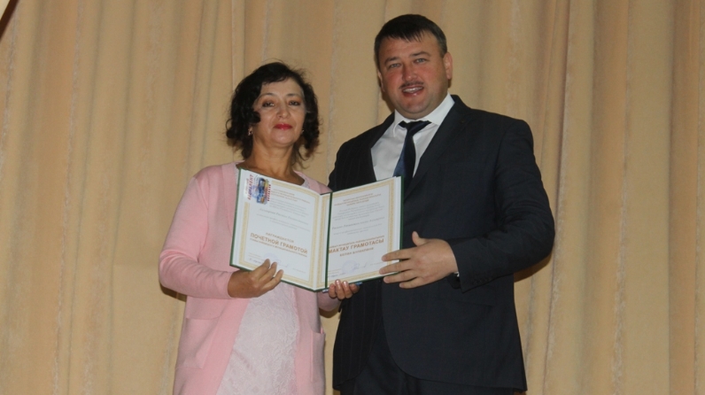 Сегодня на деловом совещании Глава района Альберт Рахматуллин наградил Почетной грамотой главного государственного налогового инспектора отдела учета и работы с налогоплательщиками межрайонной ИФНС России №8 по Республике Татарстан Расиму Аллаярову.