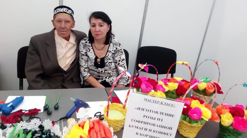 24 сентября получатели социальных услуг в Кайбицком доме-интернате для престарелых и инвалидов села Федоровское Талгат Мутыгуллин и Фарида Хайрутдинова приняли участие в 4-й специализированной выставке товаров и услуг для людей зрелого и старшего возраста "Активное Долголетие", которое проходило в выставочном центре Казанской ярмарки. Они в течении дня показывали мастер-класс по изготовлению роз из гофрированной бумаги и конфет в корзине.