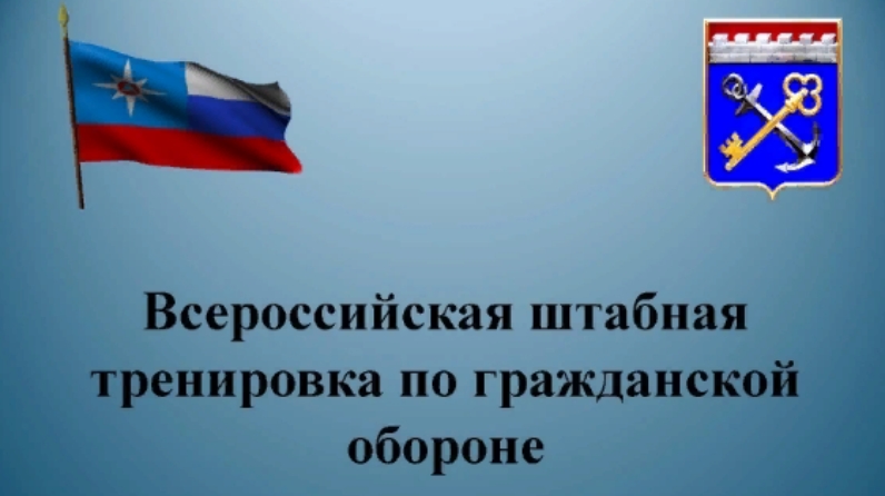 В соответствии с Комплексным планом основных мероприятий МЧС России на 2019 год в период с 01 по 02 октября 2019 года на всей территории Российской Федерации будет проводиться штабная тренировка по гражданской обороне по теме: «Организация мероприятий по приведению в готовность гражданской обороны Российской Федерации при введении в действие Президентом РФ Плана гражданской обороны и защиты населения на территории Российской Федерации».