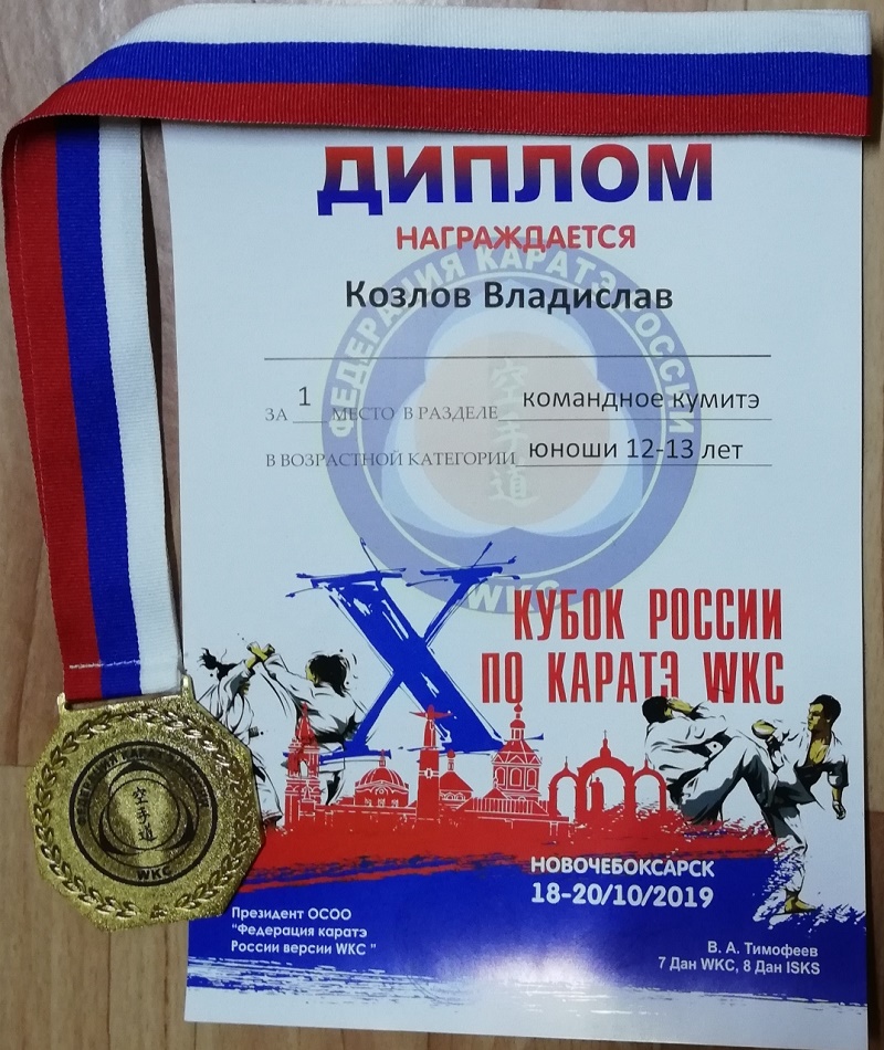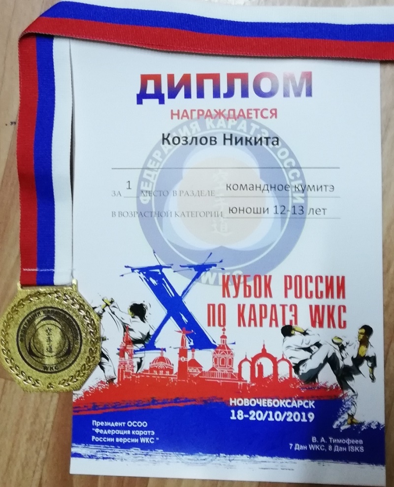 С 18 по 20 октября в городе Новочебоксарск Республики Чувашии проходили туры на X Кубок Федерации каратэ России по версии WKC. Кайбицкий район на Кубке представляли юные каратисты - Никита и Владислав Козловы, занимающиеся под руководством тренера Владислава Васильева. Они в разделе командное кумитэ заняли 1 место в возрастной категории 12-13 лет. Мы их поздравляем!