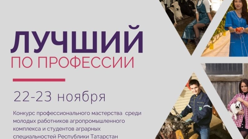 С 22 по 23 ноября в рамках реализации подпрограммы «Сельская молодежь Республики Татарстан на 2014-2020 годы» пройдет конкурс профессионального мастерства «Лучший по профессии» среди молодых работников агропромышленного комплекса Республики Татарстан. Организаторами конкурса выступают региональная общественная организация «Аграрное молодежное объединение Республики Татарстан», Министерство сельского хозяйства и продовольствия Республики Татарстан и Министерство по делам молодёжи Республики Татарстан.