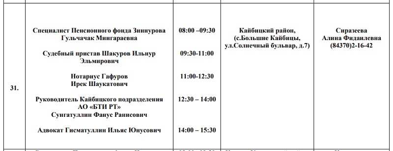 График дежурства в Единый день оказания бесплатной юридической помощи 27 ноября в Кайбицком районе: