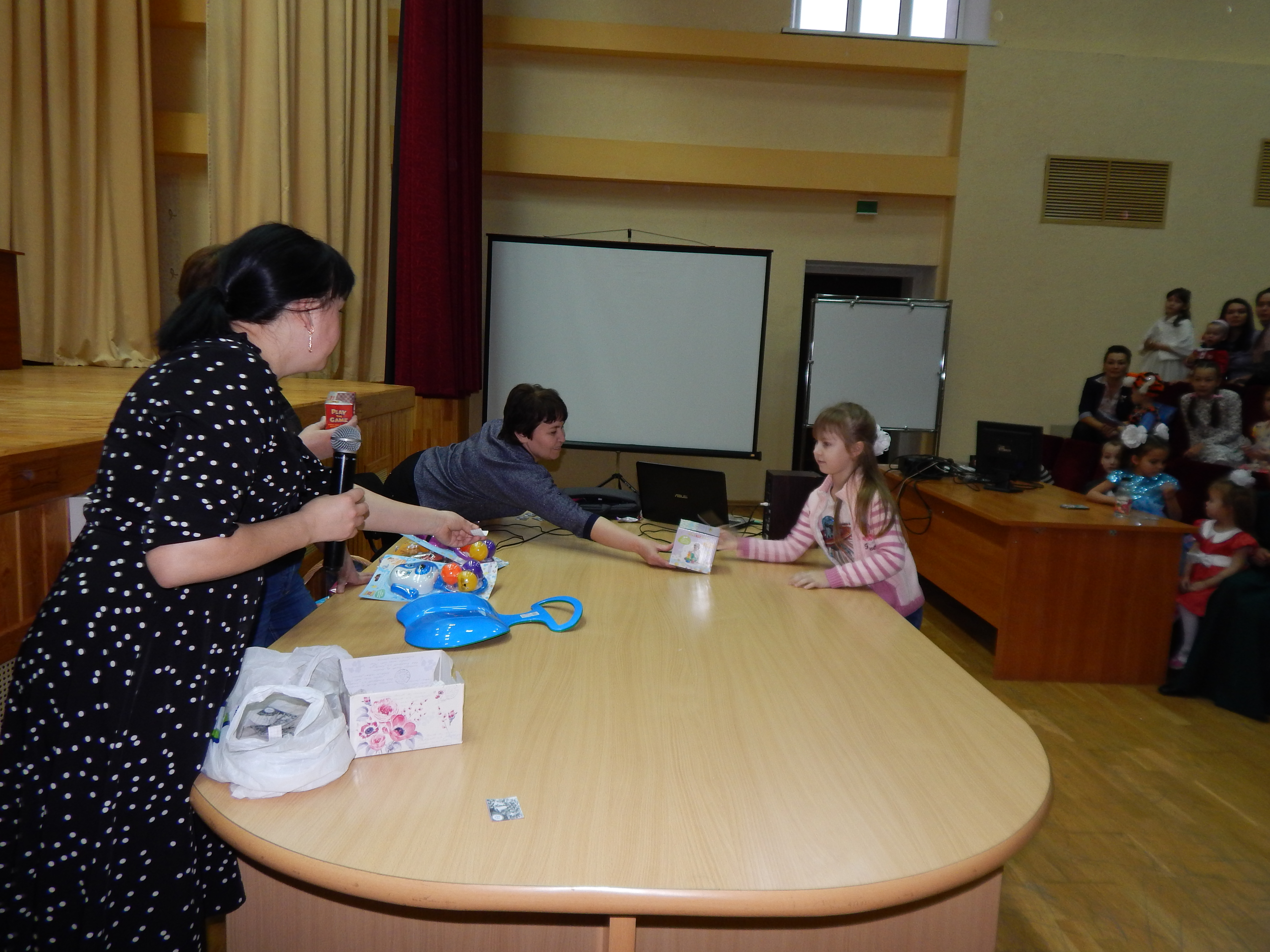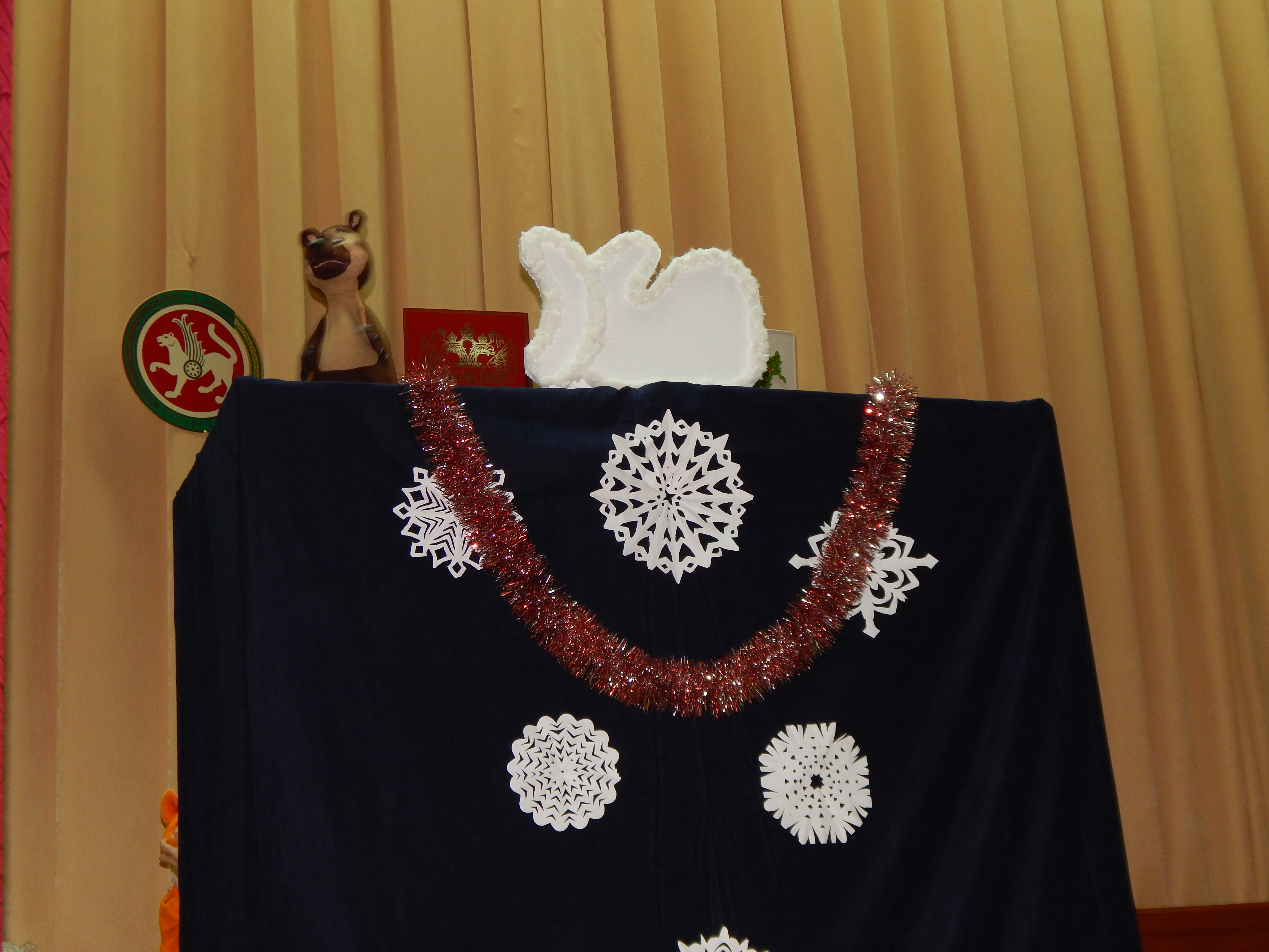 Затем дети посмотрели кукольный спектакль "Рукавичка", который исполнили ребята из детского театра кукол "Экият". Для них так же была разыграна беспроигрышная новогодняя лоторея.