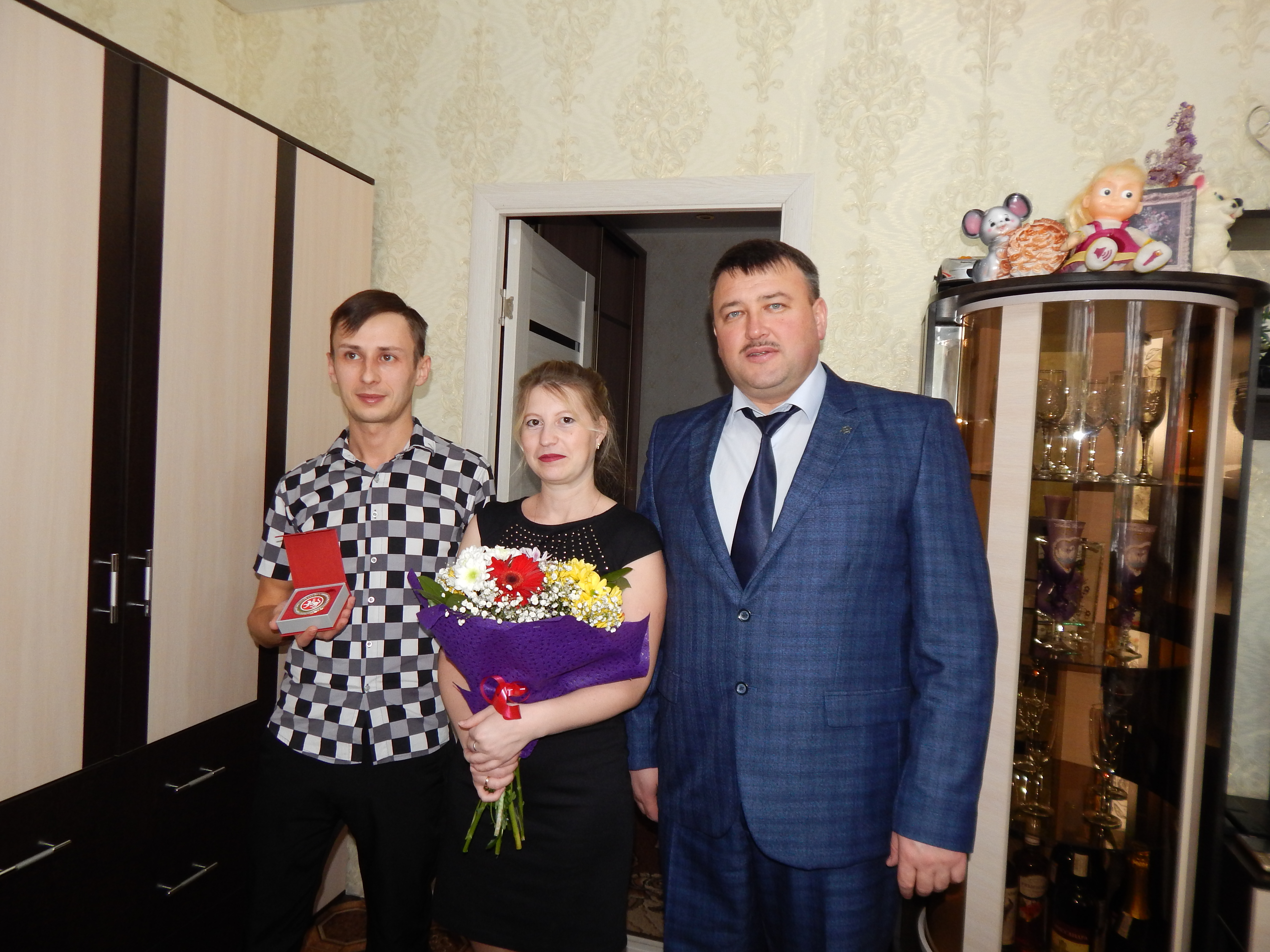 Глава района вначале побывал в семье Марины Кирилловой и Раджабали Вохидов, вручил им денежный сертификат на 20 тыс.рублей за рождение пятого ребенка.