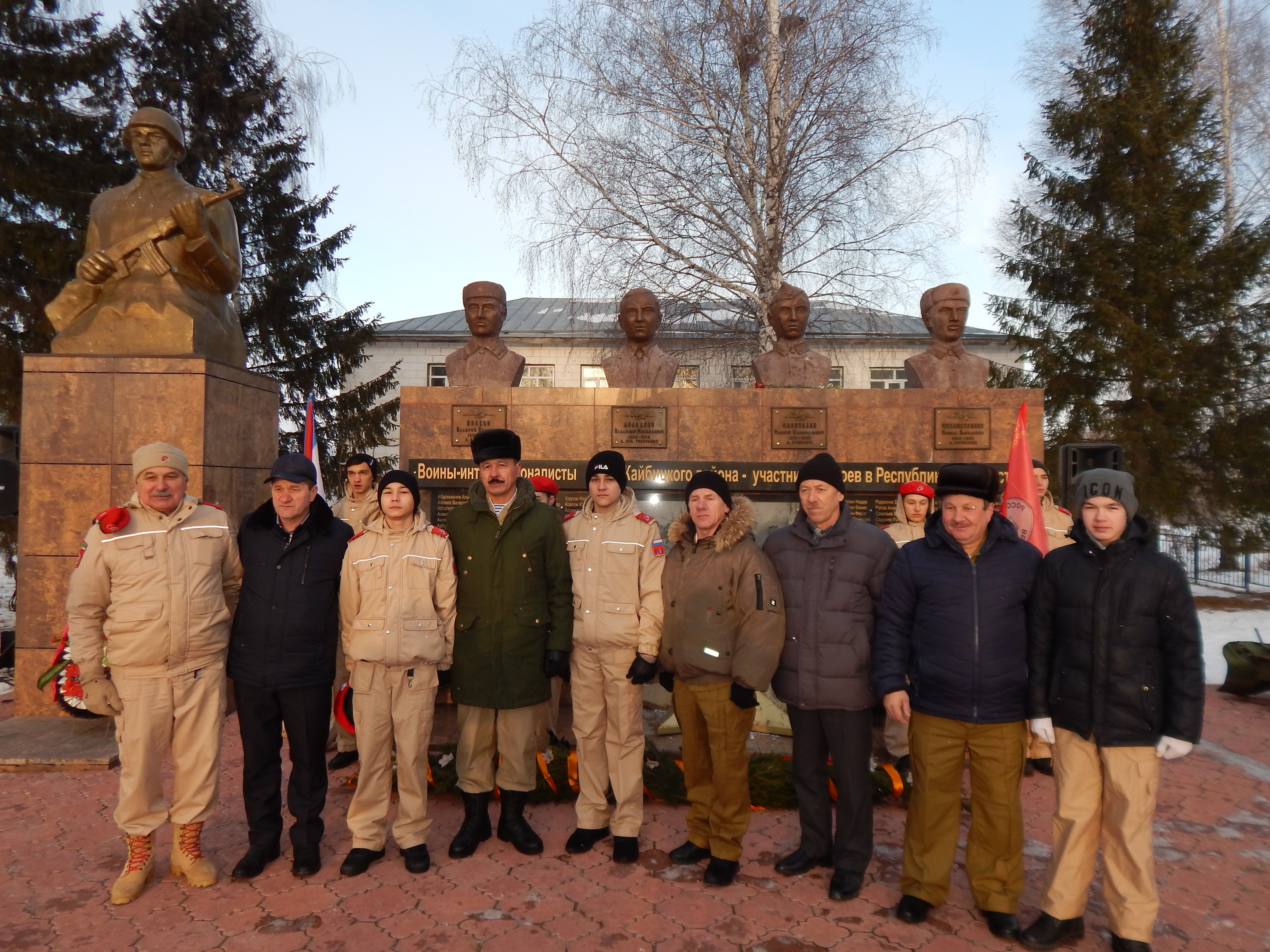 Память погибших при исполнении воинского долга участники митинга почтили минутой молчания, возложением венков к памятнику погибшим землякам воинам-интернационалистам.