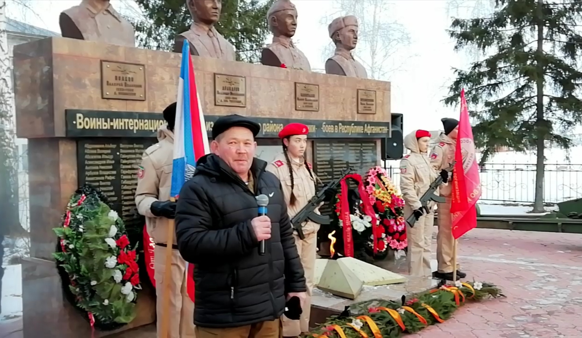 Открыл митинг Глава района Альберт Рахматуллин. «Каждый из нас обязан знать и помнить страшные страницы нашей истории. Нет ничего дороже спокойствия и мира на земле. Каждый воин-интернационалист узнал, рискуя собственной жизнью, настоящую цену мирному небу над головой. У нас есть память и благодарность по отношению к воинам, честно выполнившим свой долг, и мы понимаем – без прошлого нет настоящего, а тем более – будущего. Мы гордимся боевой славой ветеранов, всех кто сохранил верность лучшим традициям Российской армии и склоняем головы перед теми, кто не вернулся домой», — отметил в своем выступление Глава района Альберт Рахматуллин.