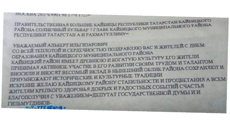 Со всей теплотой и сердечностью поздравляю вас и жителей с днем образования Кайбицкого муниципального района. Кайбицкий район имеет древнею и богатую культуру, его жители принимая активное участие в его развитии своим трудом и талантом. Вносили и вносят весомый вклад в нынешний облик района сохраняют и приумножают исторические и культурные традиции.