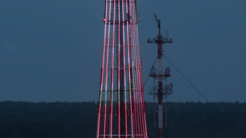 Казанская телебашня – крупнейший объект вещательной сети Татарстанского филиала РТРС, длина которой составляет 180 метров. Новая система архитектурно-художественной подсветки смонтирована на ней к ЧМ-2018.