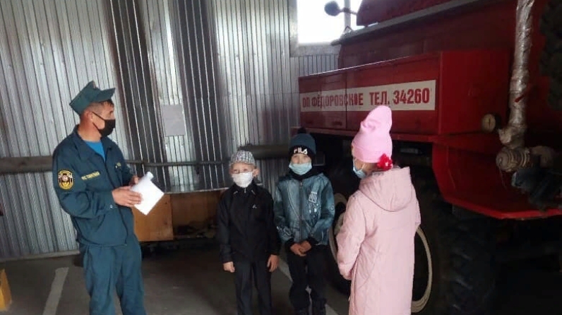 Мальчишки и девчонки с интересом осматривали пожарно-спасательную технику, снаряжения, пожарно-спасательный инвентарь. Пожарный рассказал и показал детям, как разворачивают пожарные рукава, как подают воду, о боевой одежде и как она защищает от огня. Судя по горящим детским глазам, ребятам всё очень понравилось.