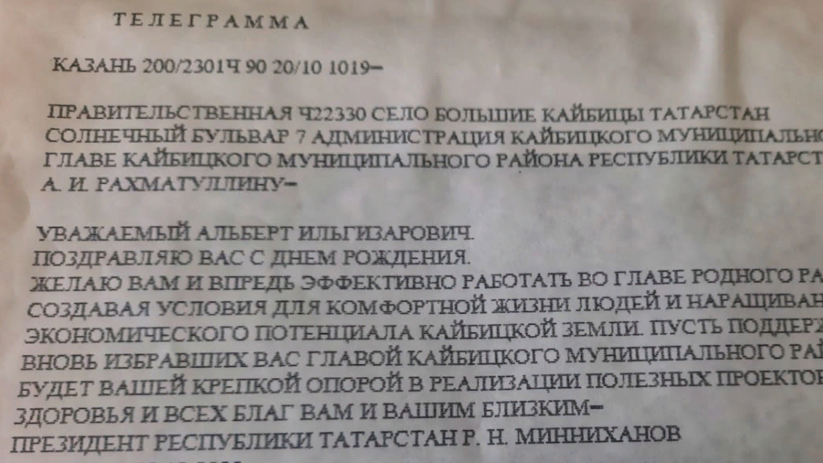 “Уважаемый Альберт Ильгизарович! Поздравляю Вас с днем рождения!