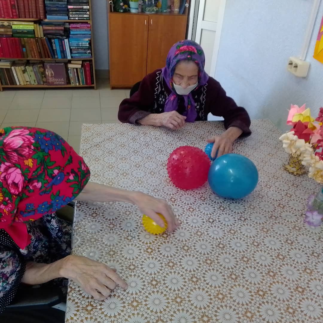 3. Занятия с колючим массажным мячом с получателями социальных услуг.