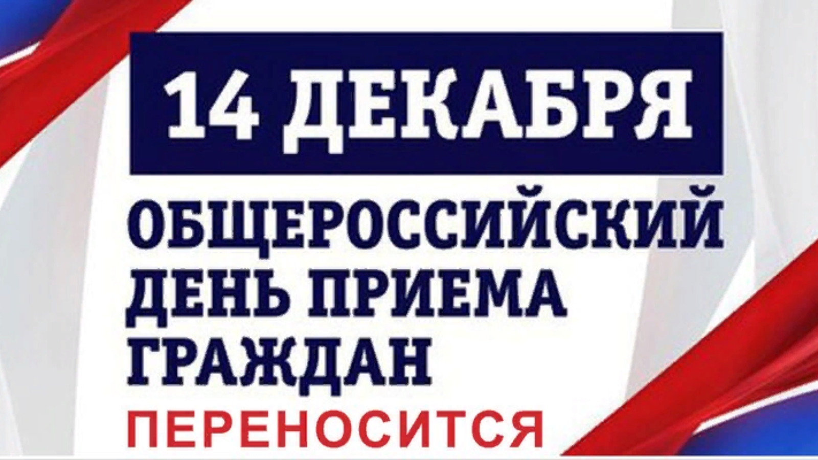 В связи с осложнением санитарно-эпидемиологической ситуацией,  Общероссийский день приема граждан, запланированный на 14 декабря, переносится до периода стабилизации эпидемиологической обстановки.