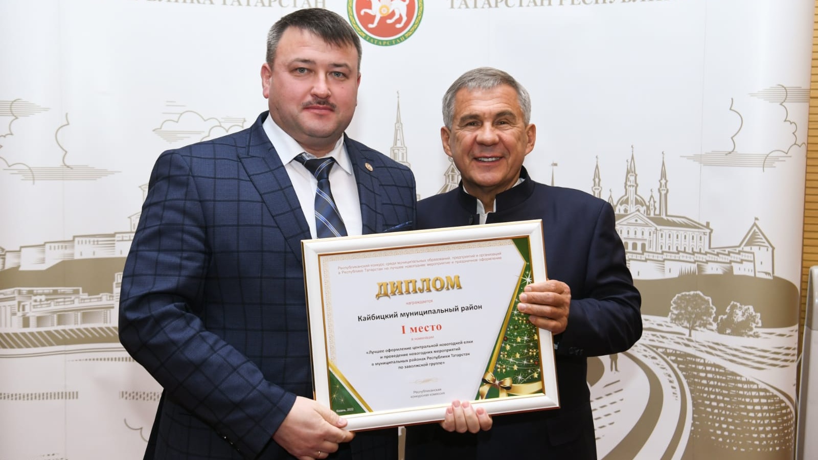 Глава Кайбицкого района Альберт Рахматуллин получил диплом лично из рук Президента РТ.
