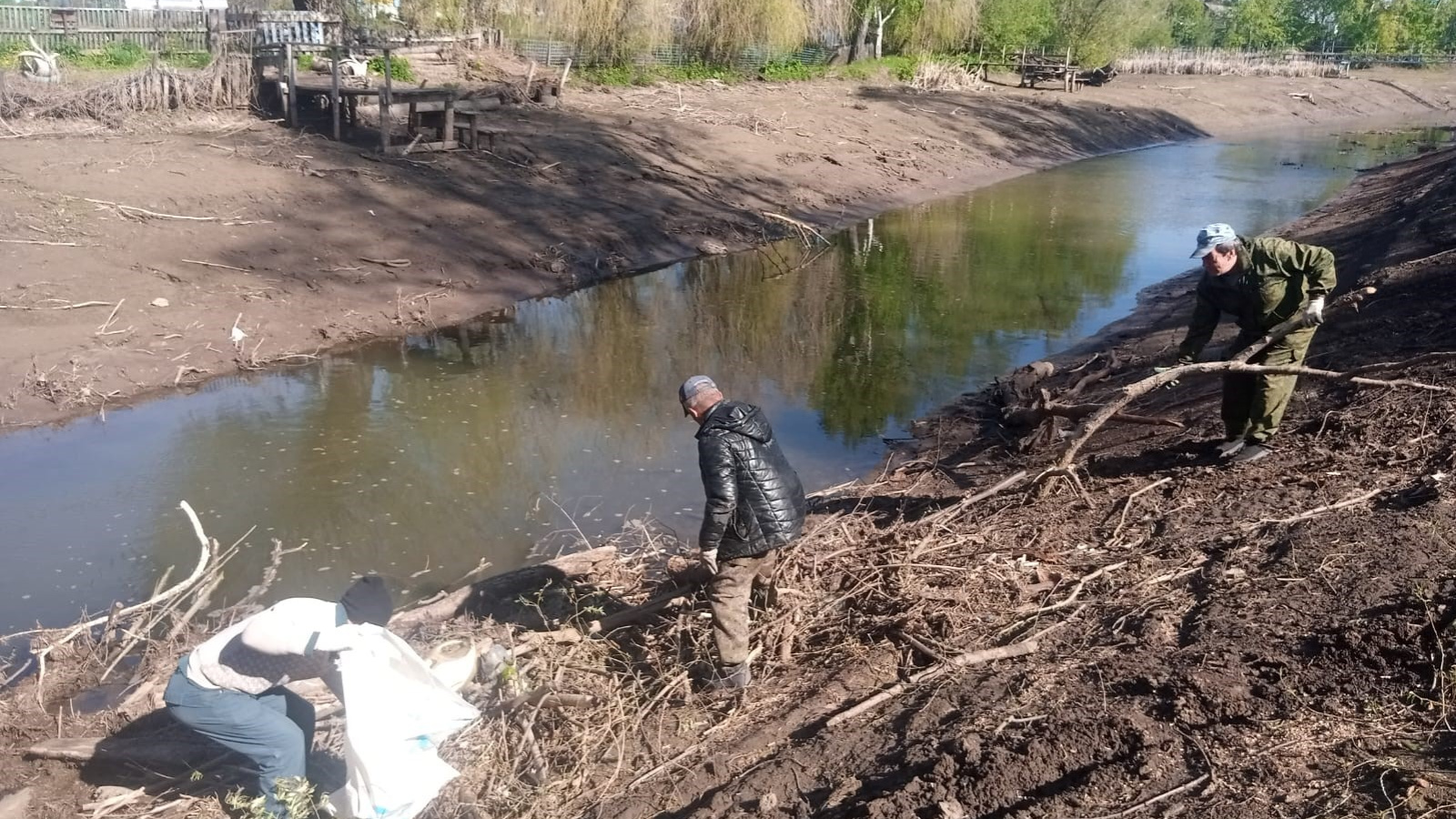 Работники Большекайбицкого сельского поселения провели субботник по уборке берегов реки Берля