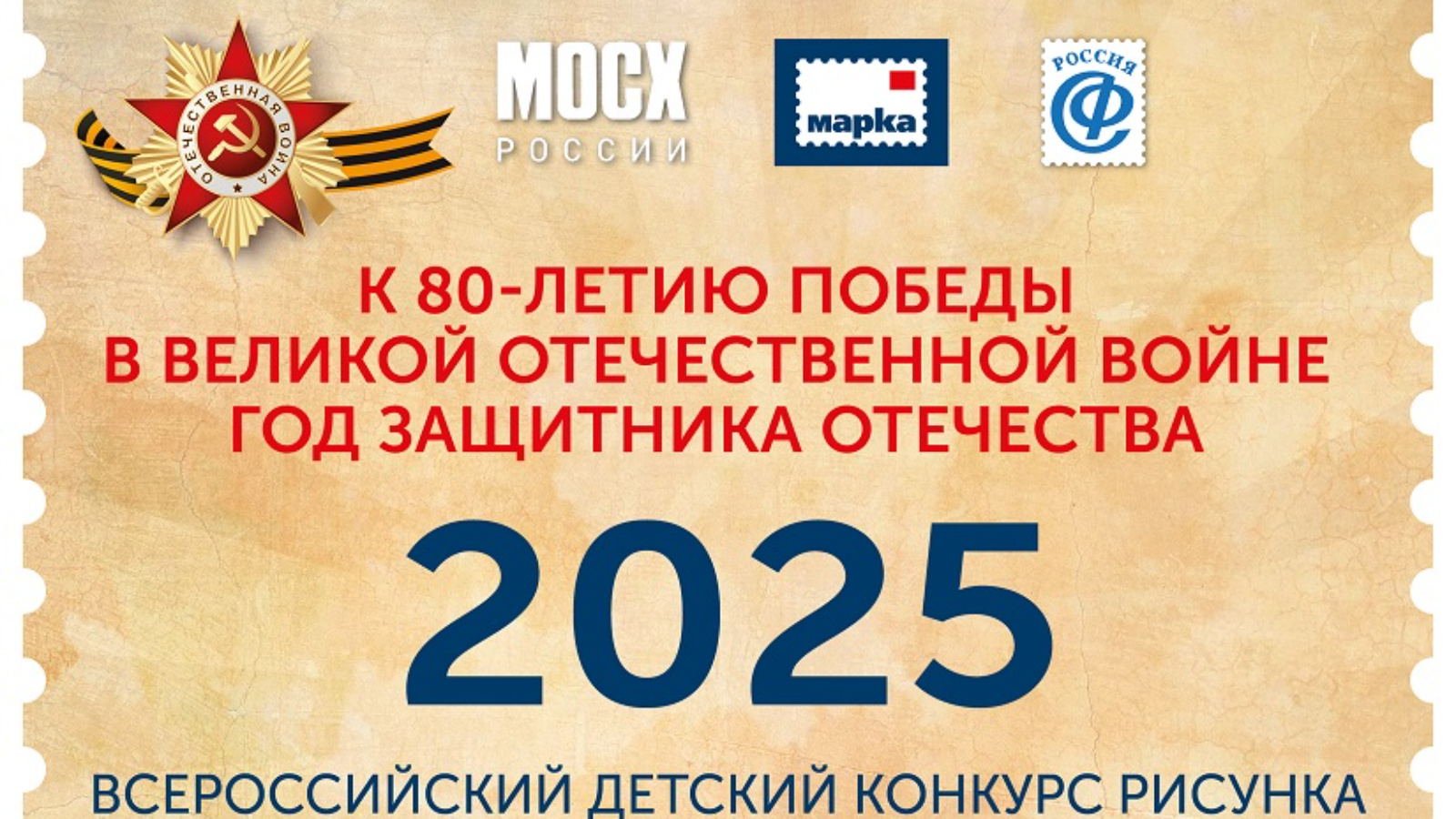 Всероссийский конкурс детского рисунка «К 80-летию Победы в Великой Отечественной войне. Год защитника Отечества» проводит дочерняя компания Почты России АО «Марка» при поддержке Московского отделения Союза художников России и Союза филателистов России.