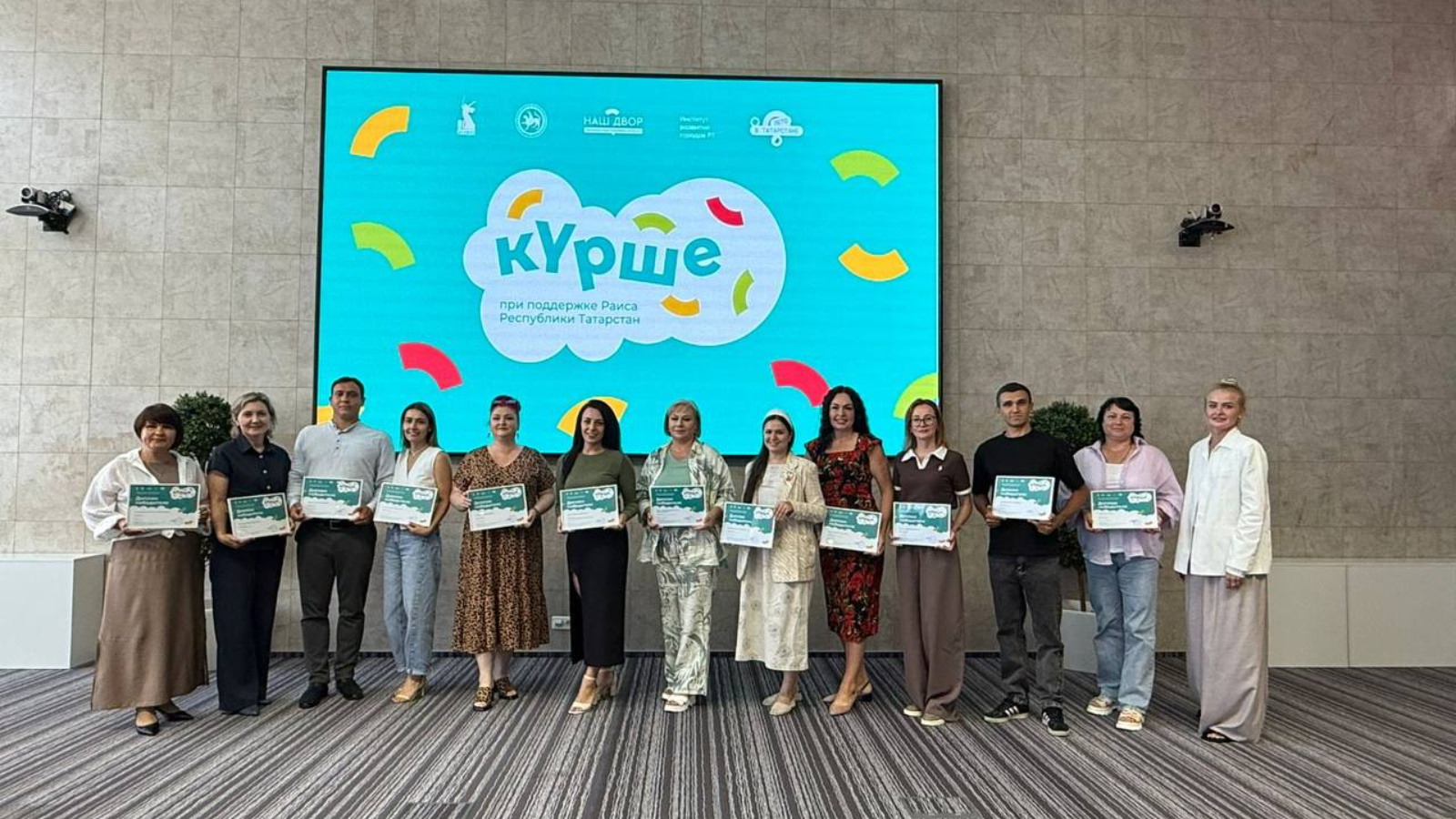 В Набережных Челнах прошло торжественное награждение участников фестиваля «Курше фест». Проект «Двор: перезагрузка» под руководством Красновой Елены Мансуровны из Кайбицкого муниципального района стала победителем республиканского конкурса дворовых событий «Курше». Конкурс стартовал в мае по инициативе Раиса Татарстана Рустама Минниханова. Поздравляем и желаем дальнейших успехов!