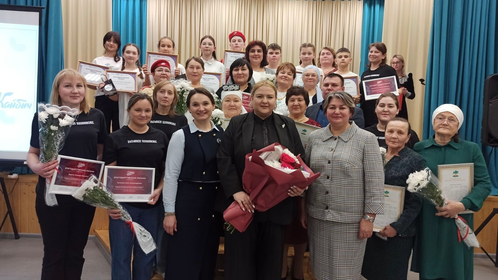 В Бурундуковском доме культуры состоялось торжественное открытие волонтерского центра «Добрые Кайбицы». В торжественной церемонии участвовали заместитель руководителя исполнительного комитета района по социальным вопросам Фания Петухова, заместитель исполнительного директора, руководитель сектора по работе с территориями АНО «Информационно-ресурсный центр добровольчества Республики Татарстан»Гузель Ганиева, начальник отдела культуры района Рамиля Аблязова, руководитель волонтерского центра «Добрые Кайбицы» Ильсина Хуснутдинова, работники культуры, волонтеры, юнармейцы, жители села. Перед началом торжества в фойе дома культуры выступили волонтеры совета ветеранов района, местной организации «Ак калфак», также из Малых Мемей, центра поддержки семейных ценностей «Вера. Надежда. Любовь», Старотябердинской и Бурундуковской школ. Активным волонтерам сел вручили благодарственные письма и букеты цветов от главы района, а председателям советов ветеранов сельских поселений, которые ведут волонтерскую работу, вручили благодарственные письма Информационно-ресурсного центра добровольчества Республики Татарстан, волонтерам-школьникам — благодарственные письма центра «Добрый Татарстан». Концертные номера членов художественной самодеятельности чередовались с выступлениями. Гузель Ганиева провела мастер-класс для волонтеров. С сегодняшнего дня волонтерский центр «Добрые Кайбицы» начал свою работу.