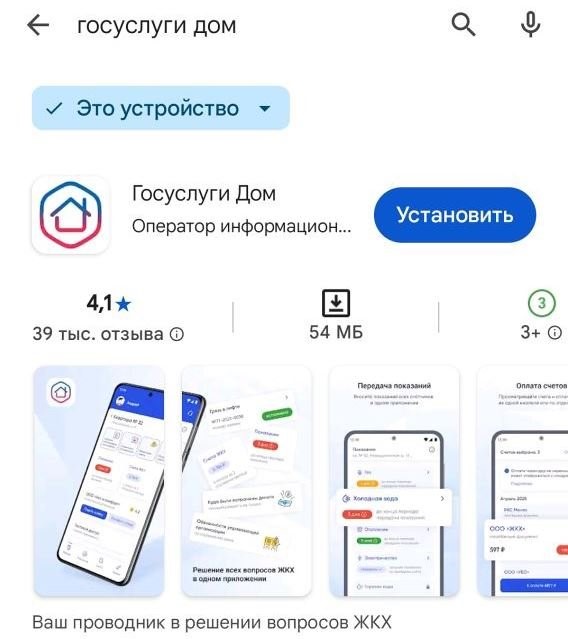 • Вбиваем «Госуслуги Дом» в магазине приложений: RuStore, RuMarket, Google Play, App Store или другом и выбираем официальное приложение. Либо проходим по ссылке https://www.gosuslugi.ru/landing/mp_dom.