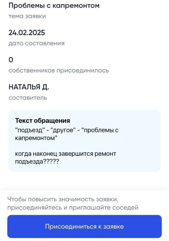 Если в почтовом ящике или на информационном стенде в доме есть информация о проведении голосования, а в приложении её нет, сфотографируйте уведомление и подайте заявку в управляющую компанию через приложение.
