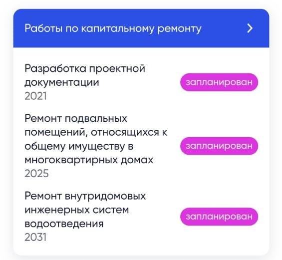 Во вкладке «Как изменится ваш дом» можно узнать о планах капремонта дома. Там указан способ, которым накапливаются деньги, — фонд капремонта или спецсчёт, сумма, которая накоплена на данный момент, а также сроки — когда какие работы будут выполнены.