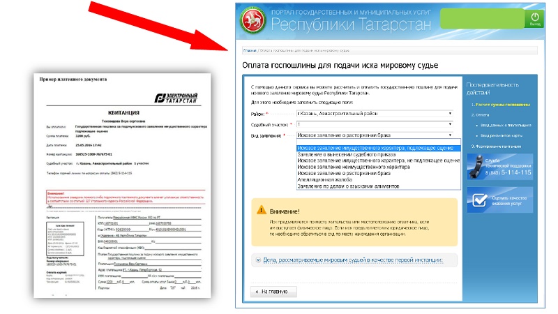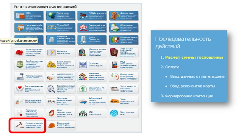 Татарстан Республикасы Дәүләт һәм муниципаль хезмәтләр күрсәтү порталында https://uslugi.tatarstan.ru ОНЛАЙН-СЕРВИС ярдәмендә пошлина бирүне исәпли һәм түли аласыз.