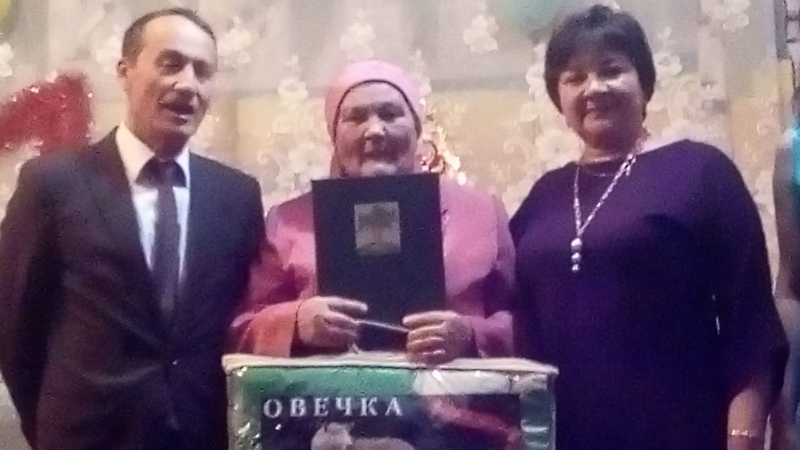 Кайбыч муниципаль район башлыгы Альберт Рәхмәтуллин исеменнән юбилярны район башлыгы урынбасары Рәмис Хәялиев һәм Кече Мәме авыл җирлеге башлыгы Елена Алексеева котлады, аңа ныклы сәламәтлек, озын гомер, гаилә җылысы, бәхет, теләде һәм район башлыгының рәхмәт хатын тапшырды.