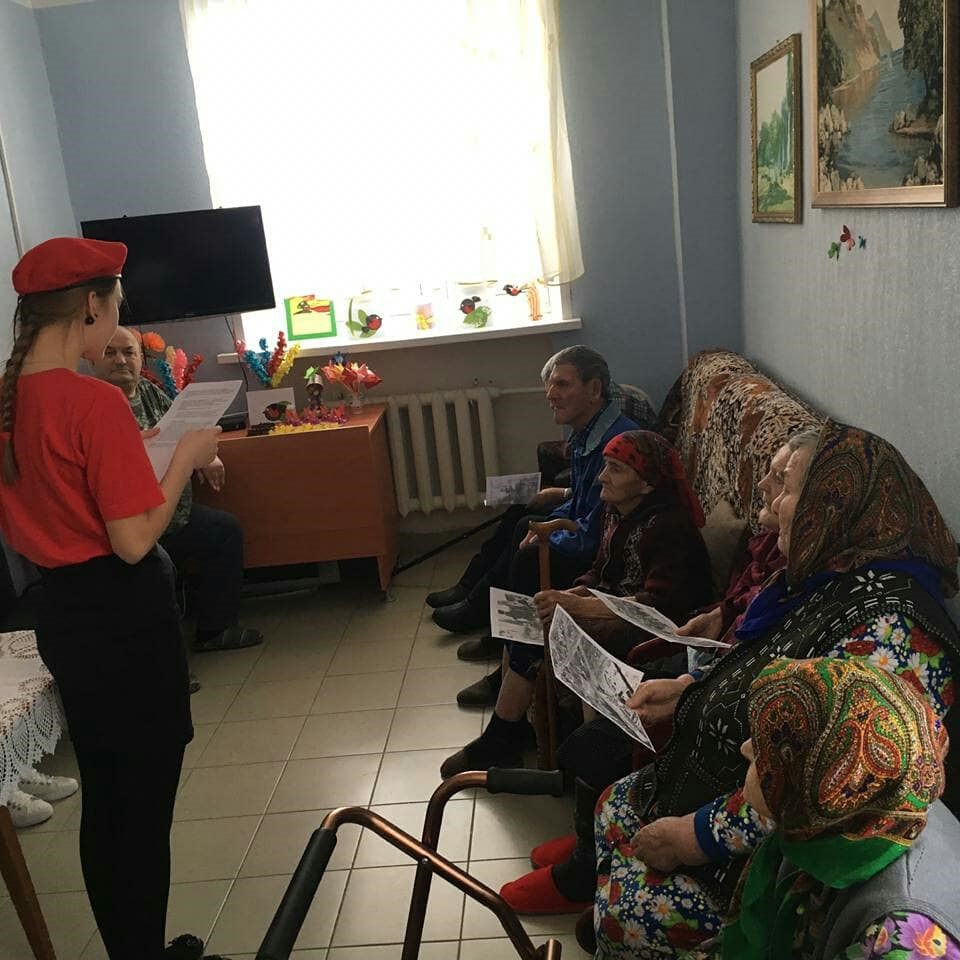 Федоровское урта гомуми белем бирү мәктәбенең «Россия патриотлары» яшь армиячеләре отряды интернат-йортында яшәгән өлкәннәр һәм инвалидлар өчен, Сталинград сугышына багышланган батырлык дәресе уздырдылар.