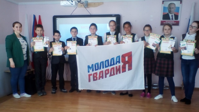 Татарстан Республикасы яшьләр эшләре министрлыгының 2018 елның 16 ноябрендәге 150 номерлы «Балаларның мәгълүмати иминлеген тәэмин итү буенча чаралар планын («юл картасы») үтәү кысаларында мониторинг үткәрү вәкаләтләрен ныгыту турында» карарын үтәү йөзеннән, яшь гвардиячеләр, Кайбыч районы башкарма комитетының яшьләр һәм спорт бүлеге һәм «ЭКО» мәктәптән тыш эшләр үзәге белән берлектә, 2019 елның 22 мартында "Интернет челтәрендә укучылар куркынычсызлыгы" викторина-дәресен үткәрделәр. Балалар бурычларны чиштеләр, интернет челтәрендә куркынычсызлык кагыйдәләрен эзләү өчен ребуслар чиштеләр. Катнашучыларга грамоталар һәм тематик брошюралар тапшырылды.
