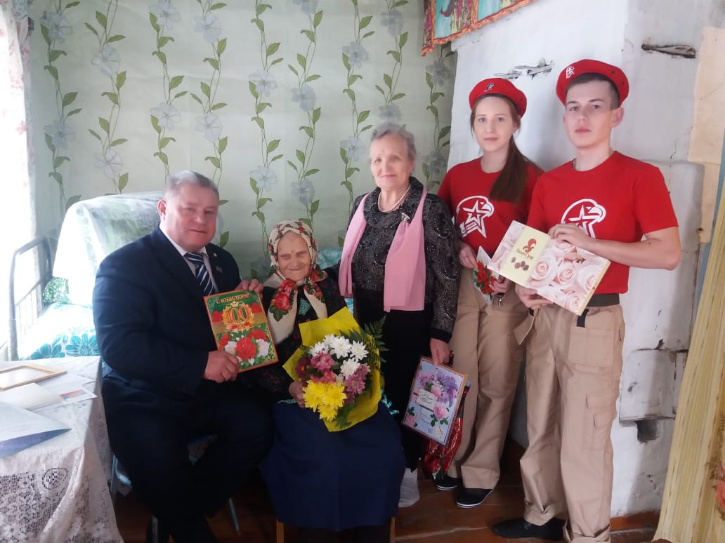 Рәмис Рафисович Анна Максимовнага Россия Федерациясе Президенты В. В. Путинның, Татарстан Республикасы Президенты Р. Н. Миңнехановның котлау хатларын һәм район башлыгы Альберт Рәхмәтуллинның бүләген тапшырды. Ул юбилярга сау-сәламәт булып тагын озак еллар яшәвен теләде.
