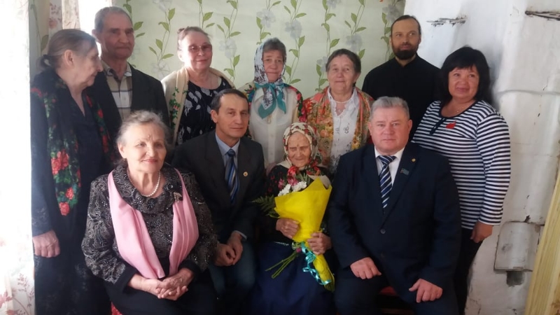 Юбилярны котларга район башлыгы урынбасары Рәмис Хәялиев, Олы Подберезье авыл җирлеге башлыгы Федор Чекмарев, социаль яклау бүлеге җитәкчесе Чулпан Камалиева, Олы Подберезье авыл җирлегенең ветераннар Советы рәисе Екатерина Елисеева, яшь армиячеләр һәм авылдашлары килгән иде.