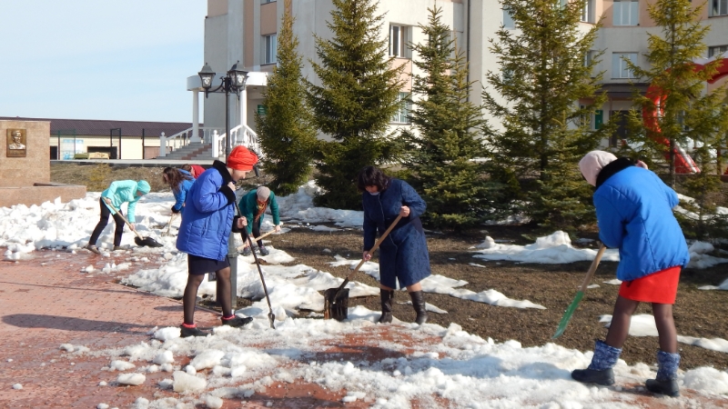 Бүген социаль яклау бүлеге һәм ведомство карамагындагы учреждениеләр хезмәткәрләре экологик икеайлык кысаларында Җиңү һәйкәле янында территорияне кардан чистарту эшләрен башкардылар. Мондый чаралар атна саен район оешмалары һәм учреждениеләре белән үткәрелә.
