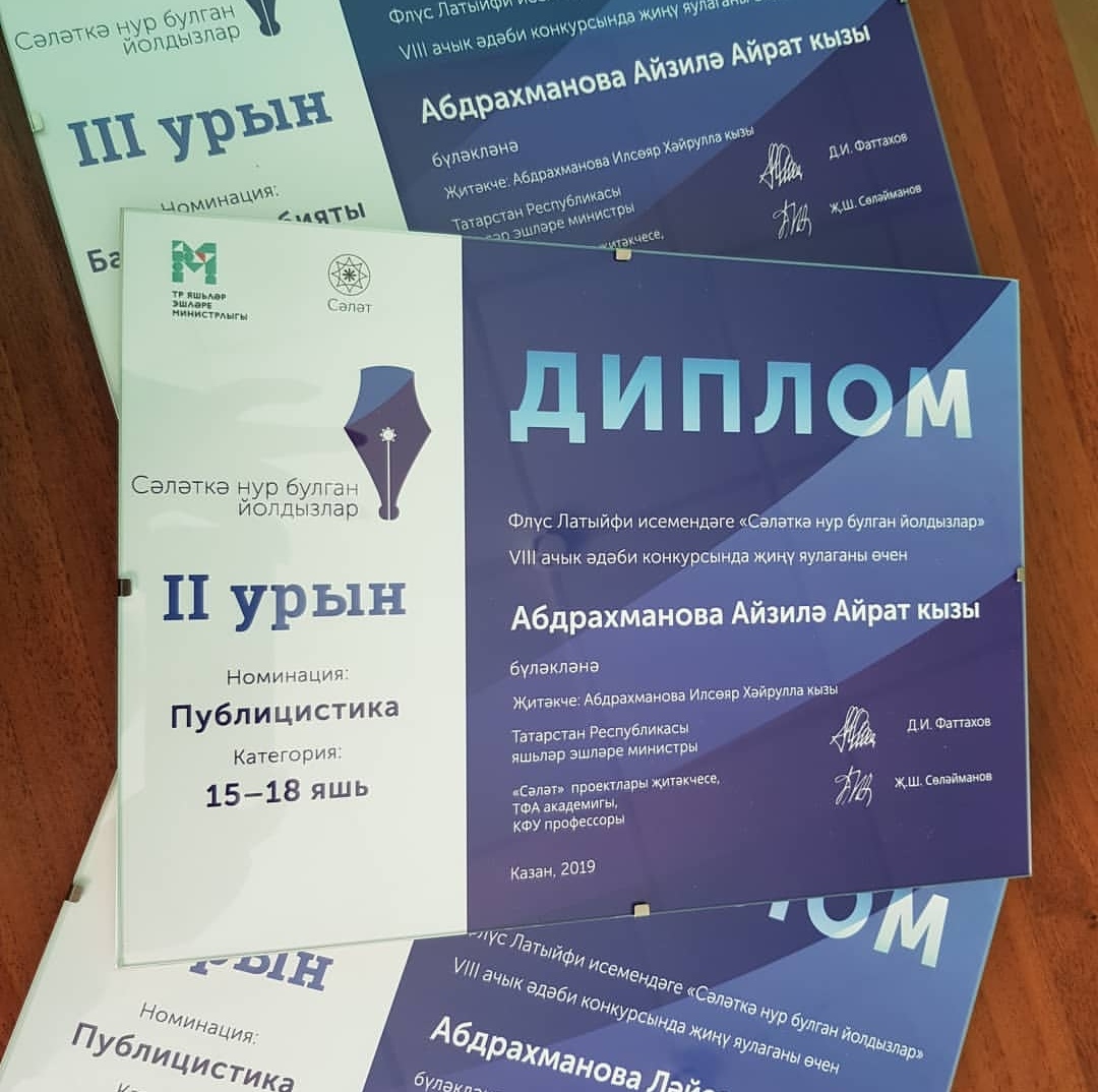 Әлеге конкурста безнең районнан Борындык төп гомуми белем бирү мәктәбе укучылары катнашты. Шулай итеп, "Публицистика" номинациясендә 1 урынны Ләйсән Абдрахманова, 2 урынны Айзилә Абдрахманова яулады. Моннан тыш, Айзилә Абдрахманова "Балалар әдәбияты" номинациясендә 3 урынга лаеклы булды. Без аларны котлыйбыз!