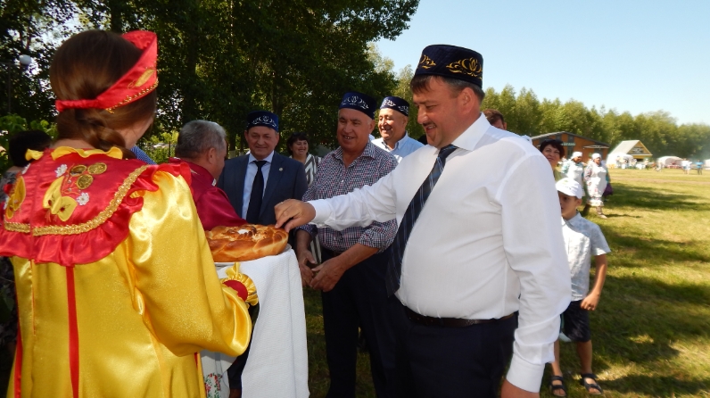 Традиция буенча бәйрәм Кайбыч районы халкының милли колоритын чагылдыручы авыл ишегалларында башланды. Авыл җирлекләре әзерләгән татар, рус һәм чуаш ишегалларында район башлыгы Альберт Рәхмәтуллинны мәртәбәле кунаклар – Татарстан Республикасының Социаль-икътисадый мониторинг комитеты рәисе Валерий Кандилов, районның элеккеге башлыклары Азат Хәнифәтуллин һәм Җәүдәт Гаффаров, «Бәрмәнчек» фольклор коллективы директоры Артур Поляков, башка кунаклар белән каршы алдылар.