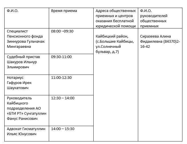 Бердәм түләүсез юридик ярдәм күрсәтү көнендә дежур тору графигы 2019 елның 27 июнендә