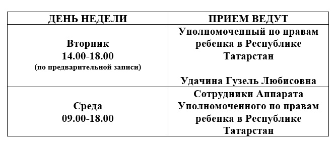 Татарстан Республикасында бала хокуклары буенча вәкаләтле вәкил Аппаратында гражданнарны кабул итү