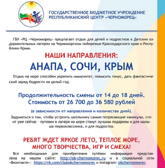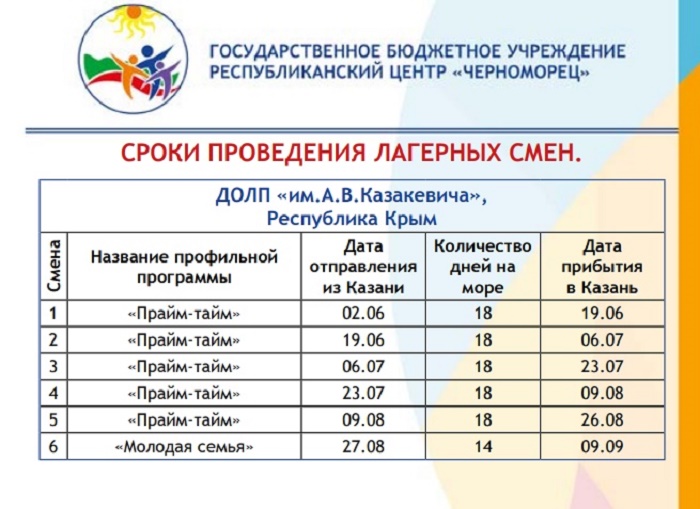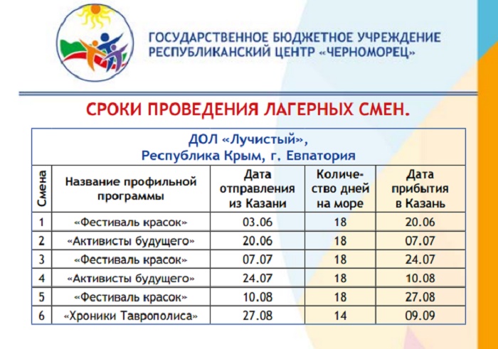 Республика "Черноморец" үзәгенең балалар сәламәтләндерү лагерьларына язылу дәвам итә