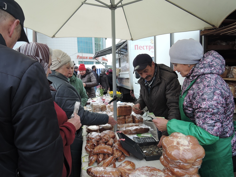 - Алай түгел ул шул, биредә бөтенләй башка ипи, тәмле. Аны, ингредиентларны кызганмыйча, элеккеге рецептлар буенча пешерәләр дип ишеттем, дип үзе ишеткән мәгълүмат белән бүлеште бер сатып алучы. – Икмәк продукциясенең бәясе дә ярминкәләрдә арзанрак. Менә бу ипине нибары 23 сумга алдым, җылы да әле … Тагын батон, булкалар алдым.