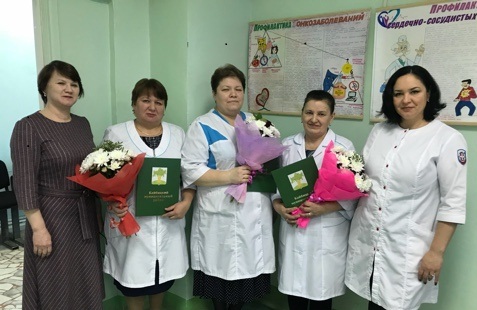 Бүген Кайбыч үзәк хастәханәсе коллективы Башкарма комитеты эшләре белән идарә итүче Дания Бәдертдинова белән бергә юбилярларны котладылар. Сәламәтлек саклау системасында күпьеллык нәтиҗәле хезмәтләре өчен Илһам Хөснетдинов, Лилия Мифтахова, Фирада Сөнгатова, Ләйлә Кәримова муниципаль район башлыгының Мактау грамотасы белән бүләкләнделәр.