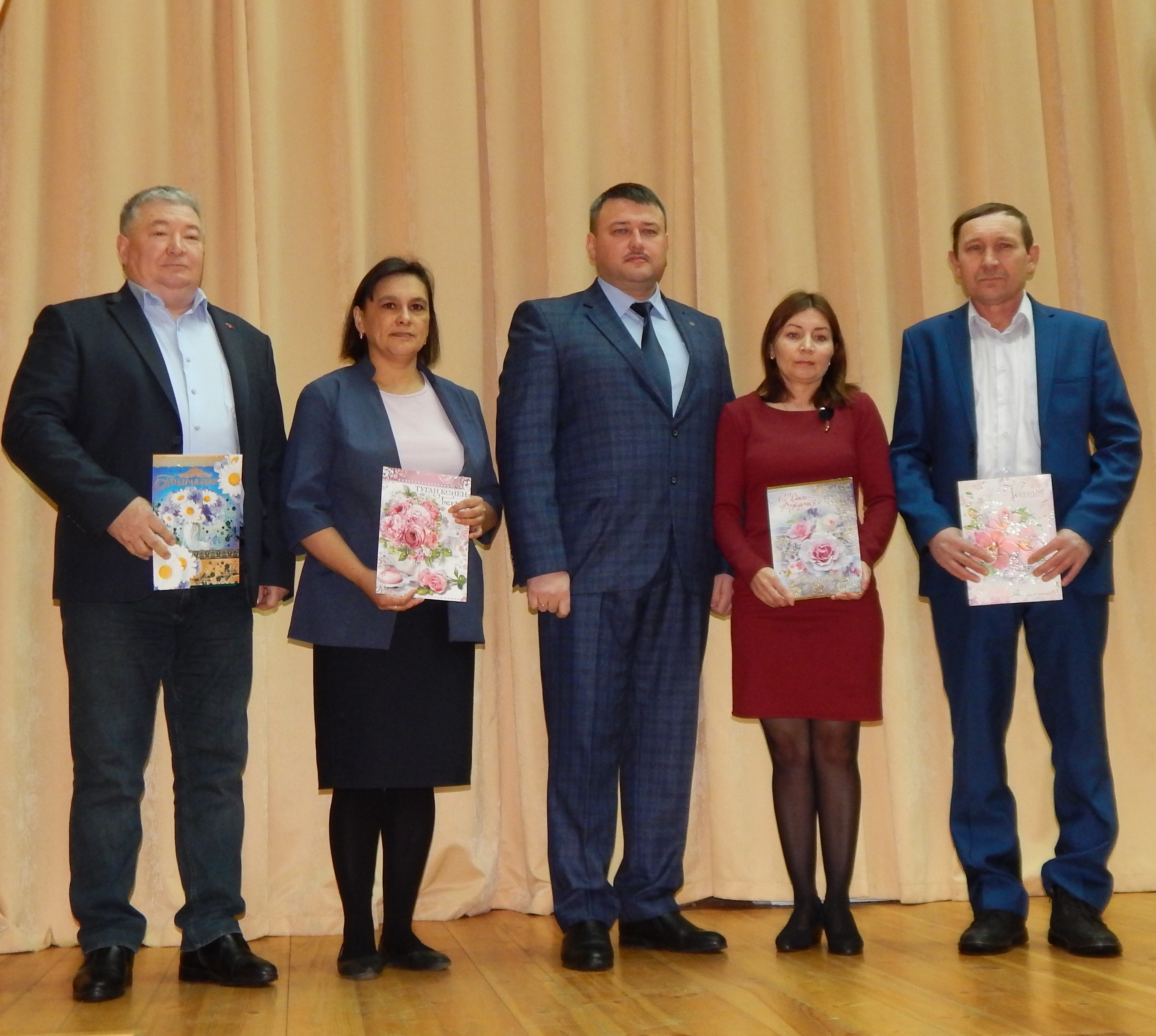 Бүген эшлекле киңәшмәдә юбилярны район башлыгы Альберт Рәхмәтуллин котлады, барысына да сәламәтлек, эшләрендә уңышлар һәм иминлек теләде.