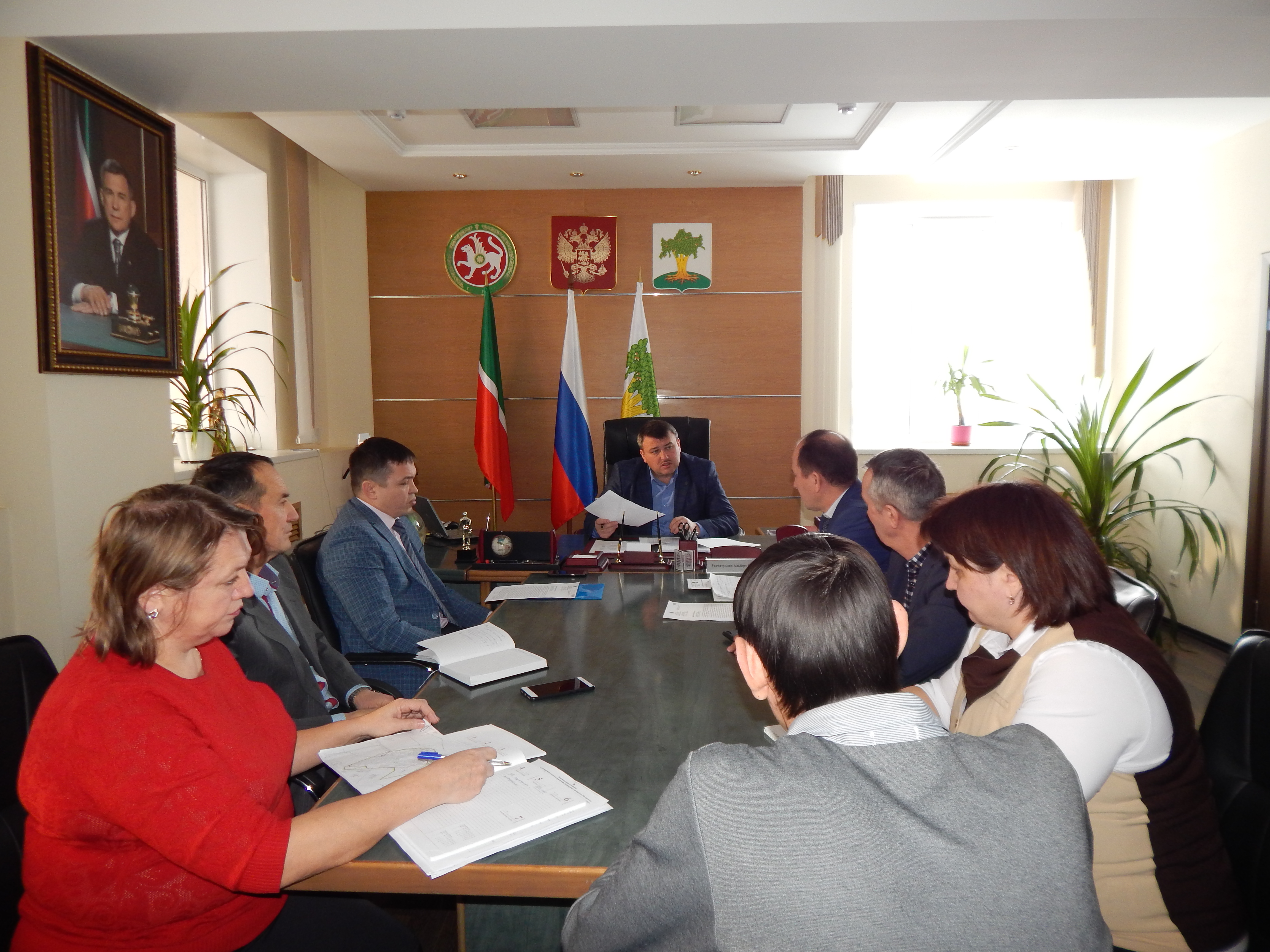 Бүген Олы Кайбычта район башлыгы Альберт Рәхмәтуллин каршында территориаль планлаштыру һәм шәһәр төзелеше зоналаштыру документларын раслау турында эшлекле киңәшмә узды.