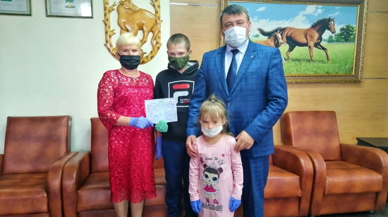 Бүген, балаларны яклау көнендә, район башлыгы Альберт Рәхмәтуллин күп балалы гаиләгә торак сатып алу өчен субсидия бирү турында сертификат тапшырды