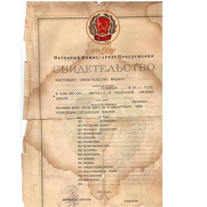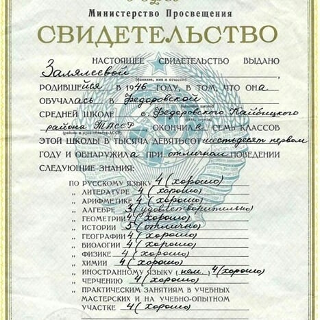 Кайбыч ягы музеенда 1939 елгы мәктәпнең тулы курсын тәмамлау турында таныклык һәм 1959 һәм 1961 еллардагы җиде сыйныфны тәмамлау турында таныклык саклана. 1931 елда дүрт сыйныфлы белем һәркем өчен мәҗбүри була, 1937 елдан — бишенче сыйныф, ә 1939 елдан җиденче сыйныфка да мәҗбүри була.